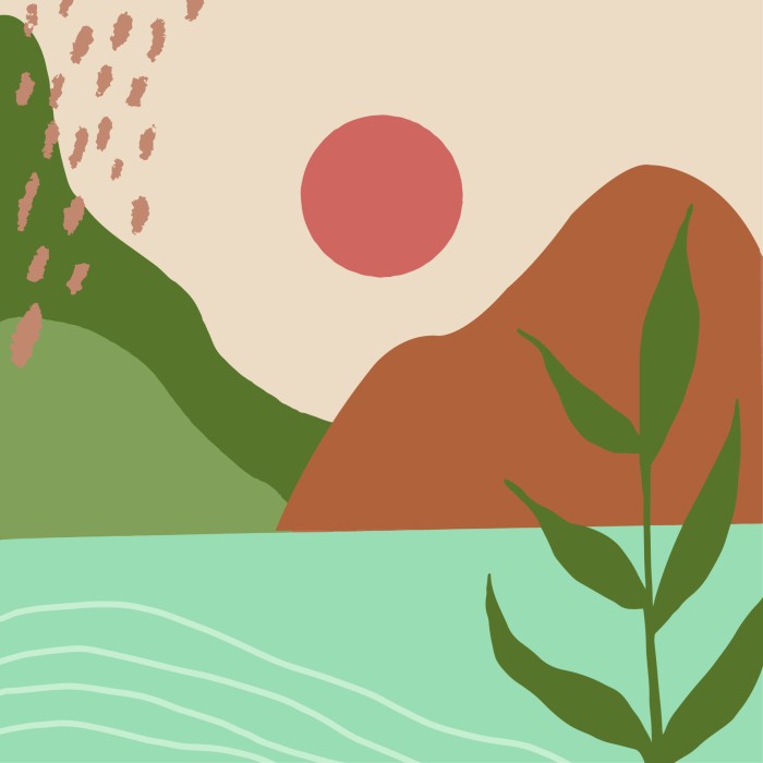 « CANOPÉE » est bien plus qu’un simple papier peint, c’est une invitation au voyage au cœur d’une nature grandiose et paisible. Imaginez-vous sur une plage de sable fin, le long d’une étendue d’eau scintillante, baignée par les teintes chaleureuses d’un lever ou d’un coucher de soleil magique. Les couleurs sont soigneusement choisies pour créer une atmosphère délicate et réconfortante : du terracotta, du vert apaisant, du bleu apportant une touche de sérénité et de l’ivoire pour une note d’élégance.